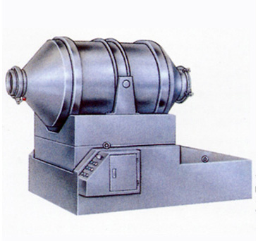 筒为圆柱形料筒,筒内不带任何搅拌装置,在绕其对称轴作自转的同时,又绕水平轴作“可倒置”摇摆运动,从而迫使料筒内的物料既有扩散混合又有移动混合。该机混合时间短,混合均匀度高,多功能可以粉碎混合同时进行。